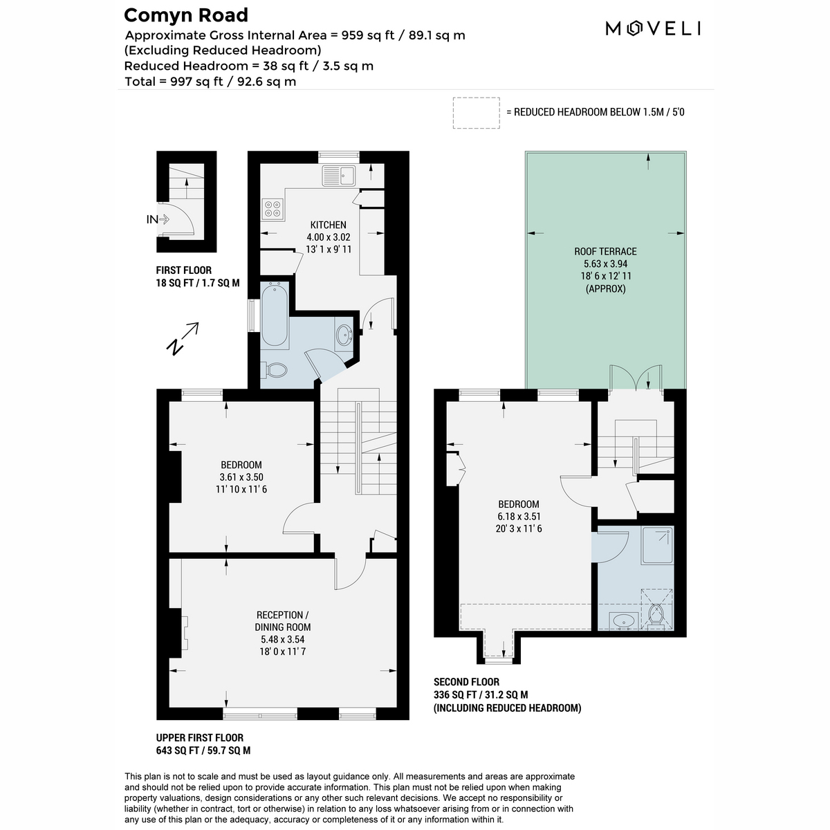 A substantial two double bedroom, two bathroom property with a large roof terrace. The property measures 997 sq ft / 92.6 sq m and is a short walk to Clapham Junction / Northcote Road. Share of freehold / no chain.