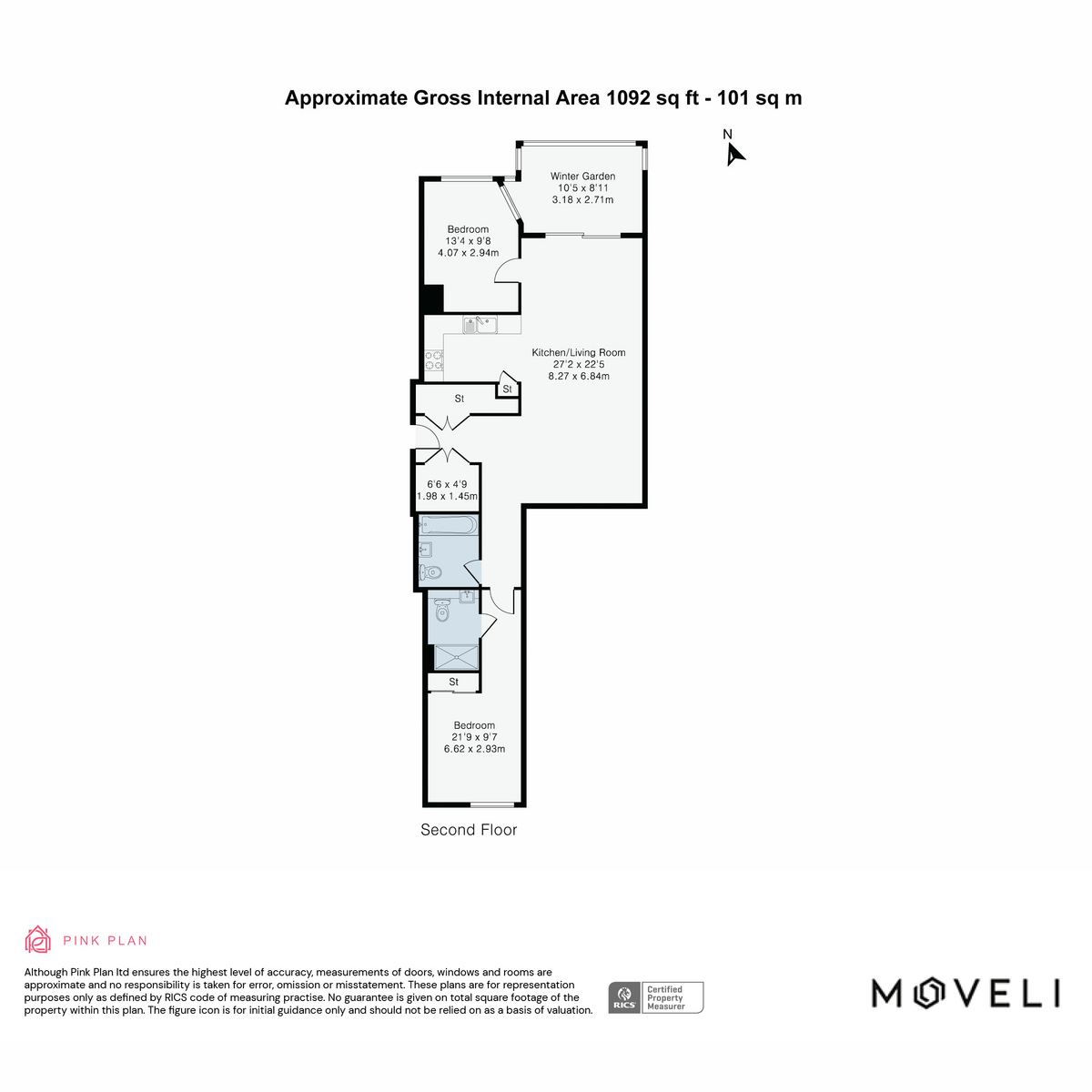 Both bedrooms are large double sizes and beautifully presented. One bedroom has built in storage and an ensuite shower room. There is additionally a large beautifully finished bathroom with rainfall style shower.