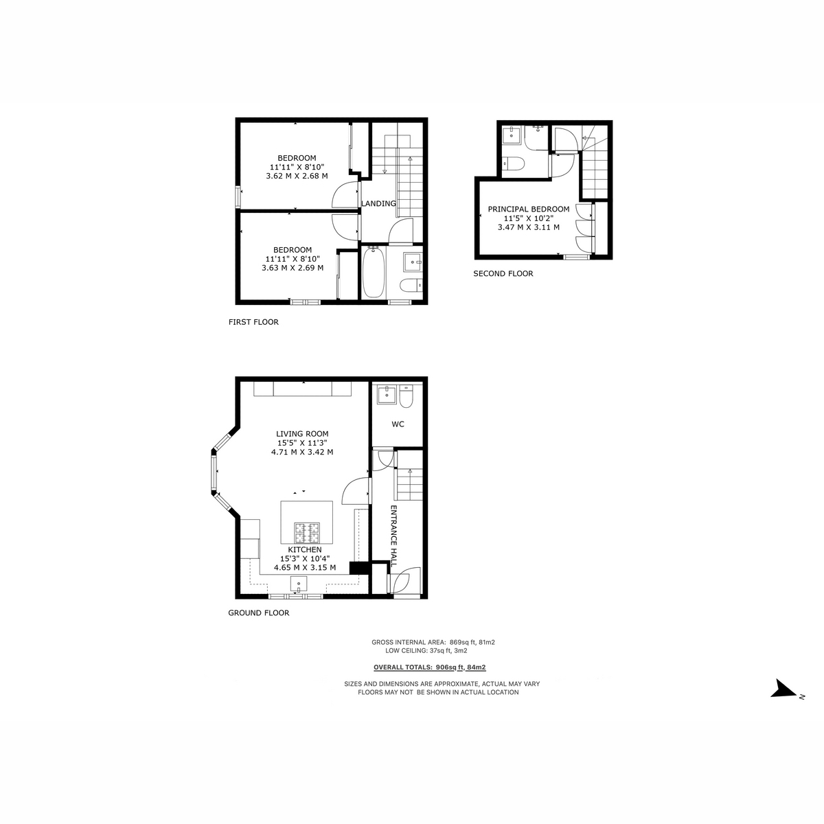 Ascending the stairs to the first floor, you'll find two spacious double bedrooms and a family bathroom. On the second floor, there is an additional bedroom complete with its own en-suite shower room.