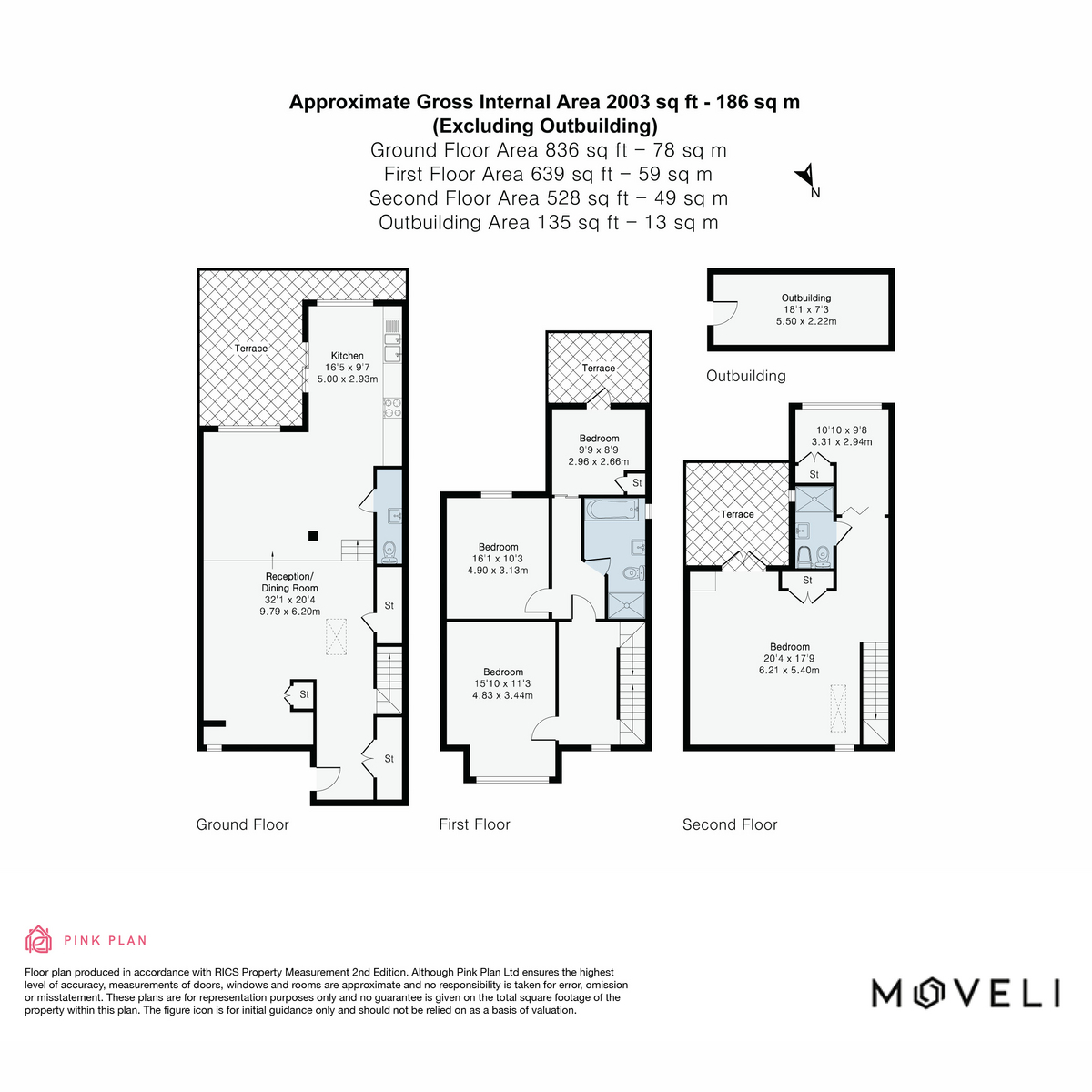 The main living spaces include a sunken sitting room, a modern kitchen, and a dining area opening directly onto a terrace and garden. Clever storage and a utility room/WC complete the ground floor.
