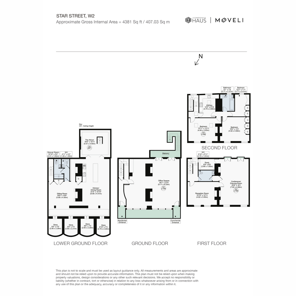 The front façade, defined by its classical rhythm, tall sash windows, and subtle commercial elements, immediately distinguishes this property as one of the most prestigious houses in W2, where scale and heritage are harmoniously balanced by symmetry. Inside, the layout is both functional and inspiring: the ground and lower ground floors are presently arranged as commercial spaces, complete with a substantial kitchen, dining room and cloakroom, while the upper maisonette occupies the first and second floors, offering the potential of four bedrooms and domestic accommodation of exceptional generosity, both with their own entrances.
