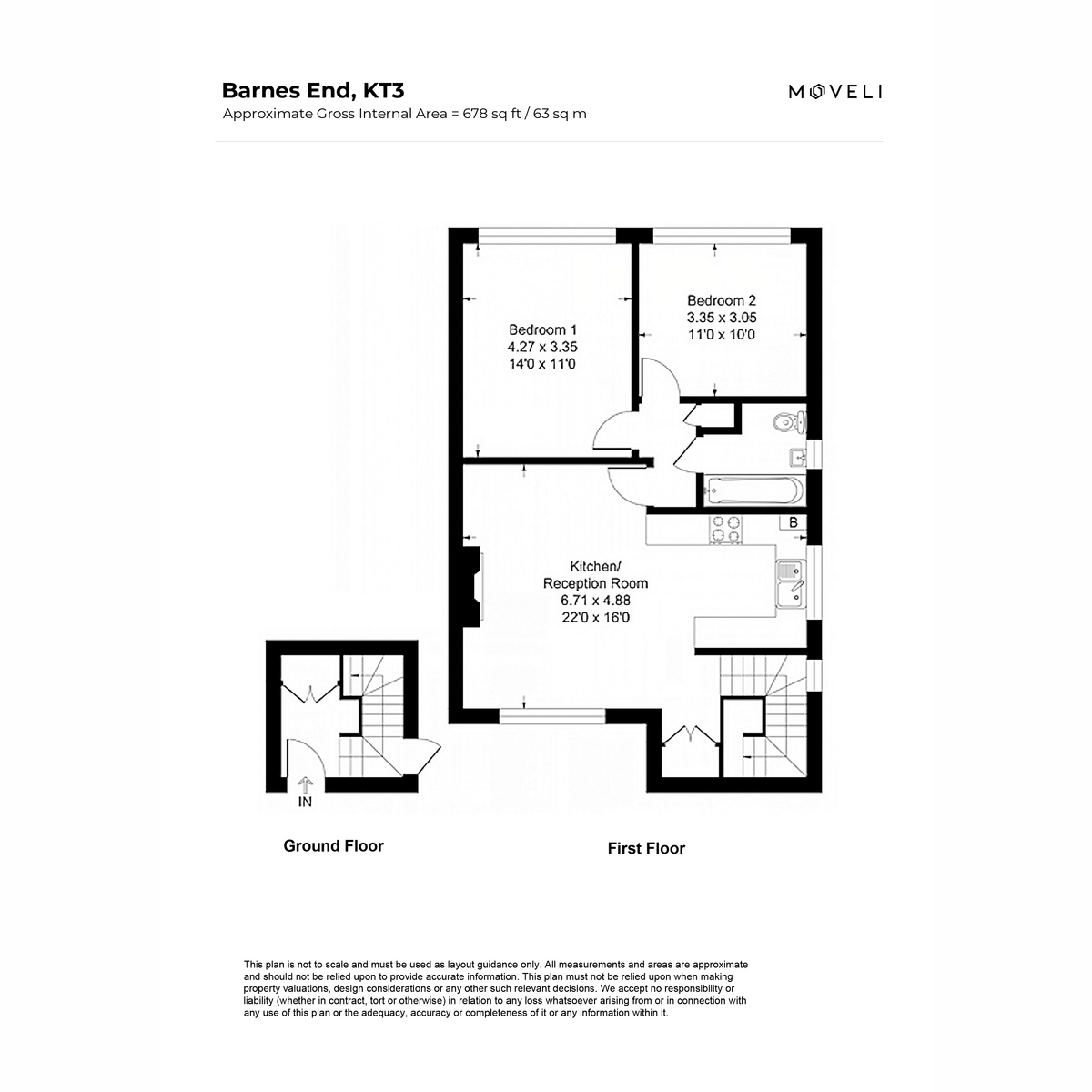 The spacious principal bedroom, with a second well-proportioned bedroom both overlook the rear garden, alongside a bathroom with contemporary features.