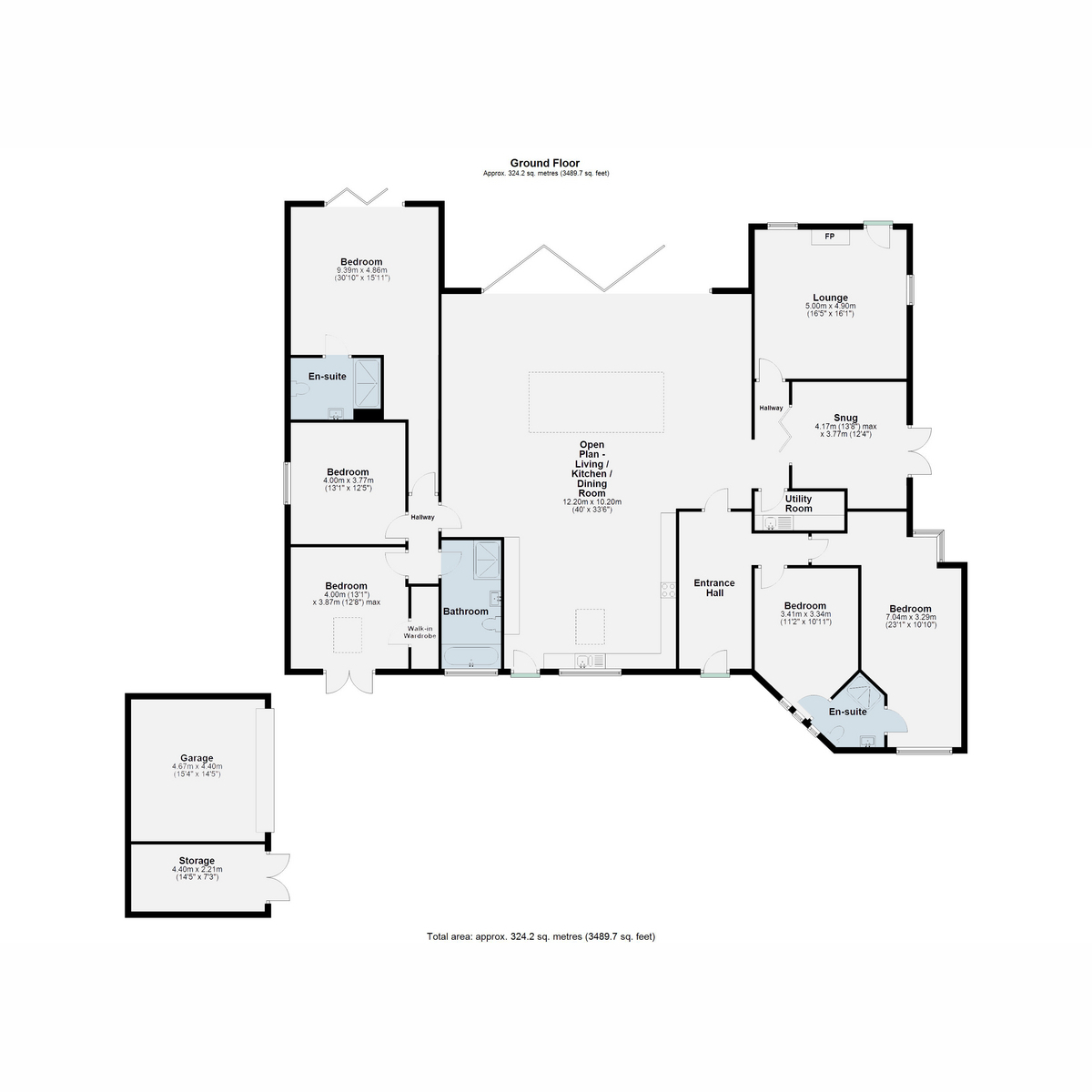 Beyond, a welcoming lounge centres around a charming log burning stove and enjoys tranquil views over the rear garden. A separate snug offers an ideal retreat or home office, with patio doors opening directly onto the garden.