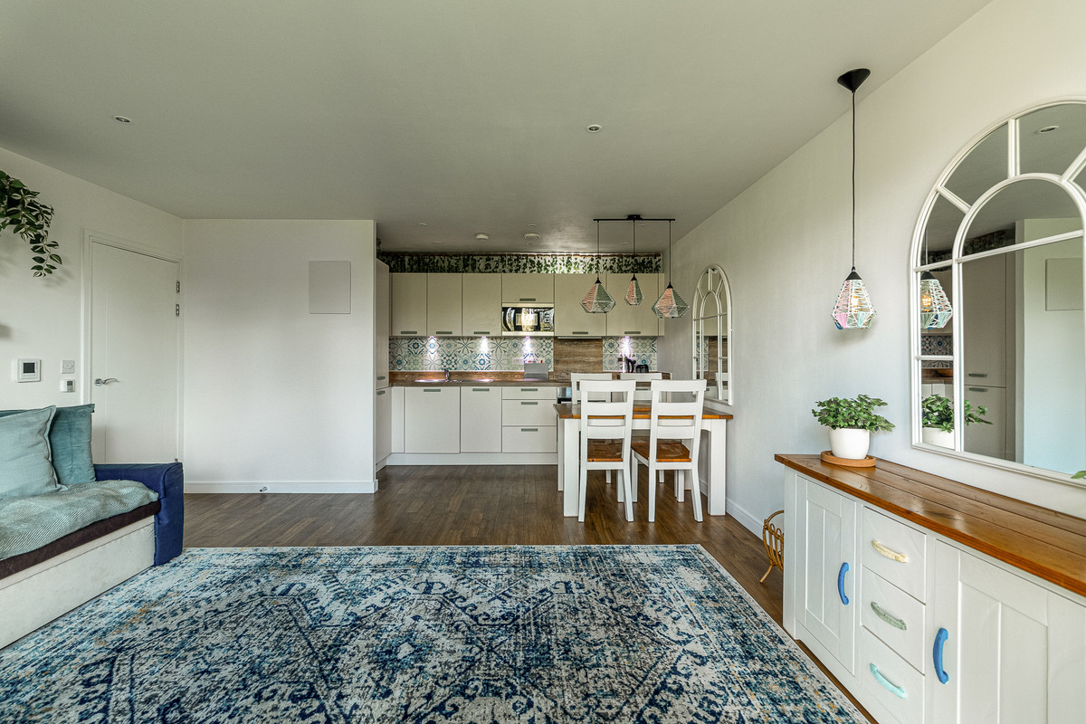 Experience the perfect combination of style, comfort, and tranquillity in this generously sized one-bedroom apartment, offering approximately 549 sq ft of living space. Located on the top floor of a highly sought-after development, it features a bright, open-plan reception with a modern fitted kitchen, clever built-in storage, and a private balcony overlooking the lush Ecological Park. Finished with neutral decor throughout, the apartment provides a calm, inviting atmosphere ready for your personal touch.